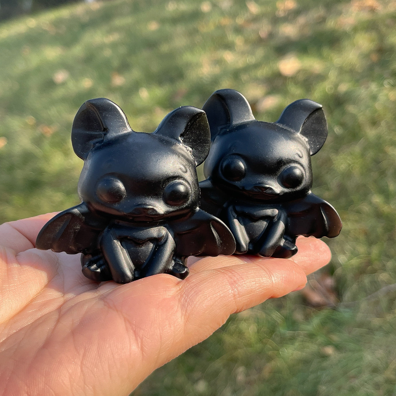 🌟Features:These are natural Black Obsidian carved into whimsical "bat baby"—boasting a sleek, deep black surface with a subtle glossy sheen like midnight sky polished smooth 🌌! Each bat has plump, rounded features big doe eyes, floppy ears, and tiny folded wings that feel soft and tactile in the palm, while the stone’s inherent depth adds a quiet, mysterious charm. Their compact size makes them perfect for tucking on shelves, desks, or even carrying as a pocket companion. It’s a charming blend of whimsy and grounding: ideal for anyone who loves subtle magic in daily life.