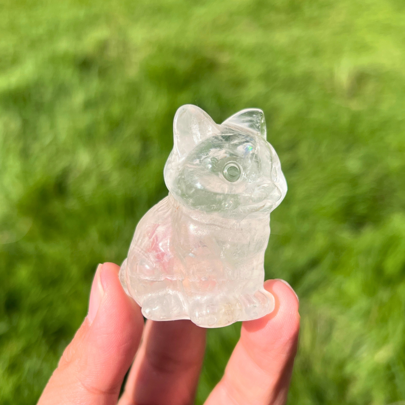 🌟Features: Hand-carved from natural clear quartz, these cats have a translucent, glossy finish. Their cute design makes them charming crystal art pieces 🐱, each unique.