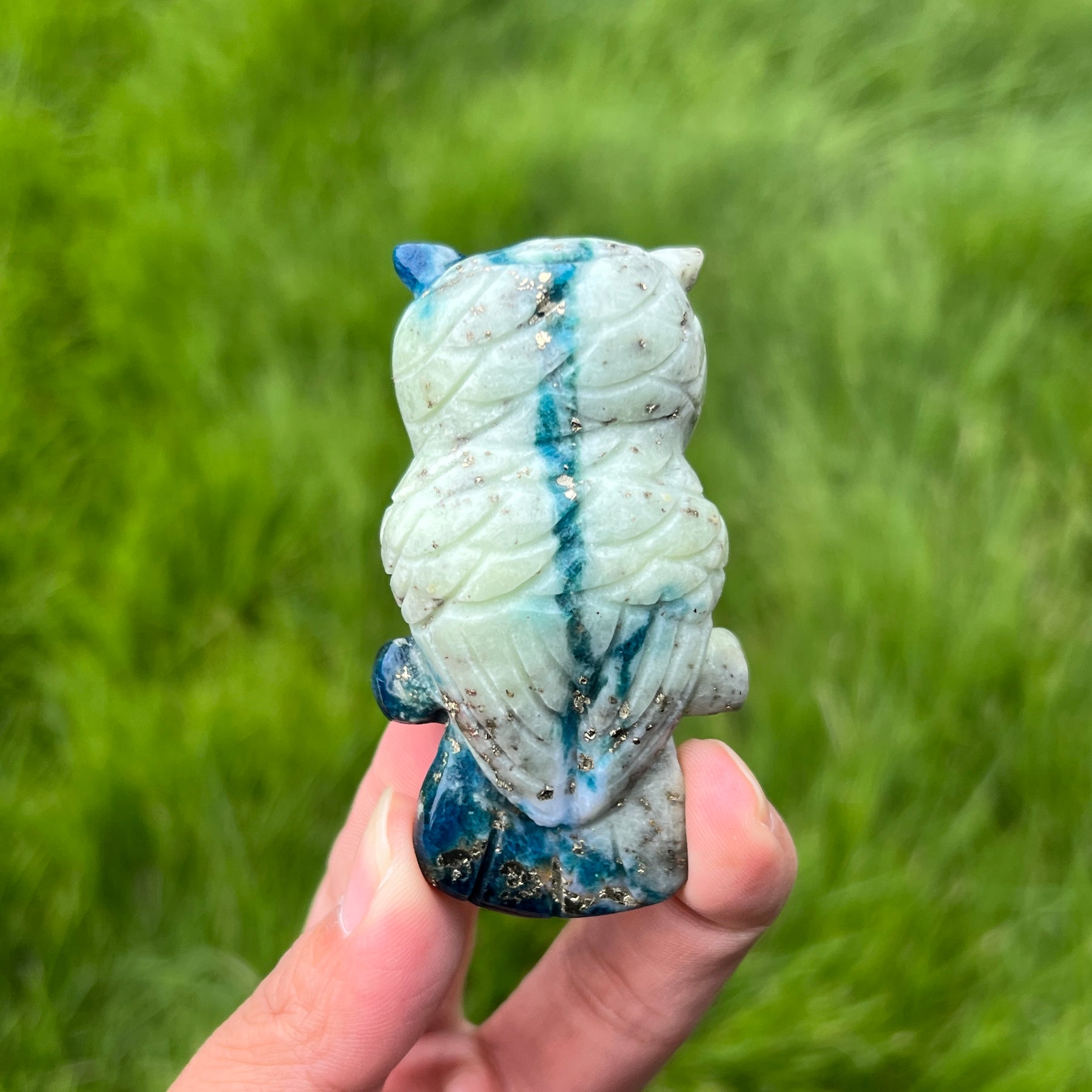 🌟Features: Hand-carved from natural green and blue sodalite, these owls feature unique color patterns. Their cute, detailed design makes them charming crystal art pieces 🦉, each one-of-a-kind.