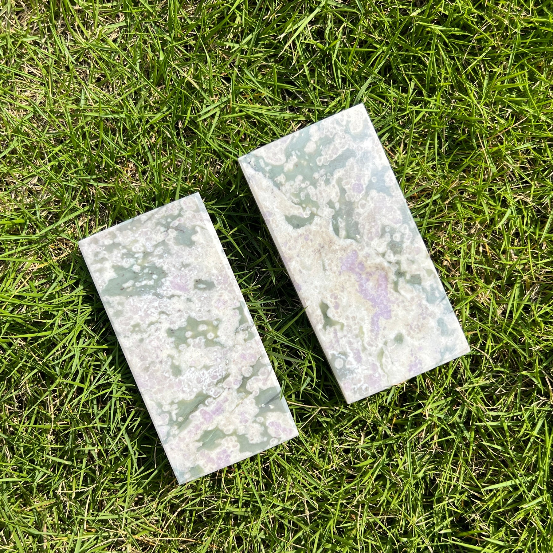 Made from natural Atlantisite, these slices feature a stunning mix of light green, white, and purple patterns. Each is a unique piece of abstract art, super eye - catching 🌟.