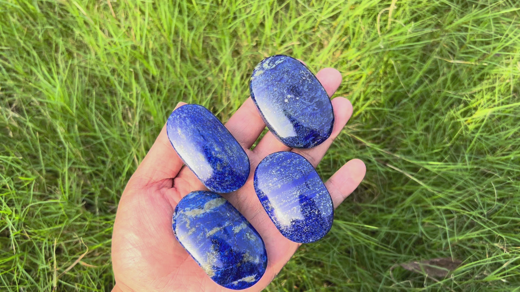 Crafted from natural lapis lazuli, these palm stones feature deep blue hues with golden flecks and smooth, polished surfaces—each piece is unique, perfect for tactile comfort and visual appeal 💙✨.