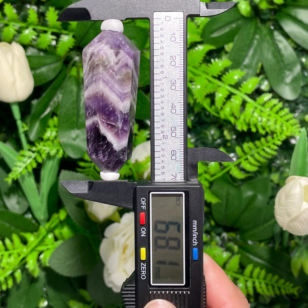 💜 Unique Features These Dream Amethyst Double Point pieces, around 40mm in size, are a sight to behold. Crafted from dream amethyst, they flaunt striking purple hues interwoven with intricate white patterns, like a mystical landscape captured in crystal. Each double - pointed shape is meticulously formed, radiating an air of elegance and enchantment.