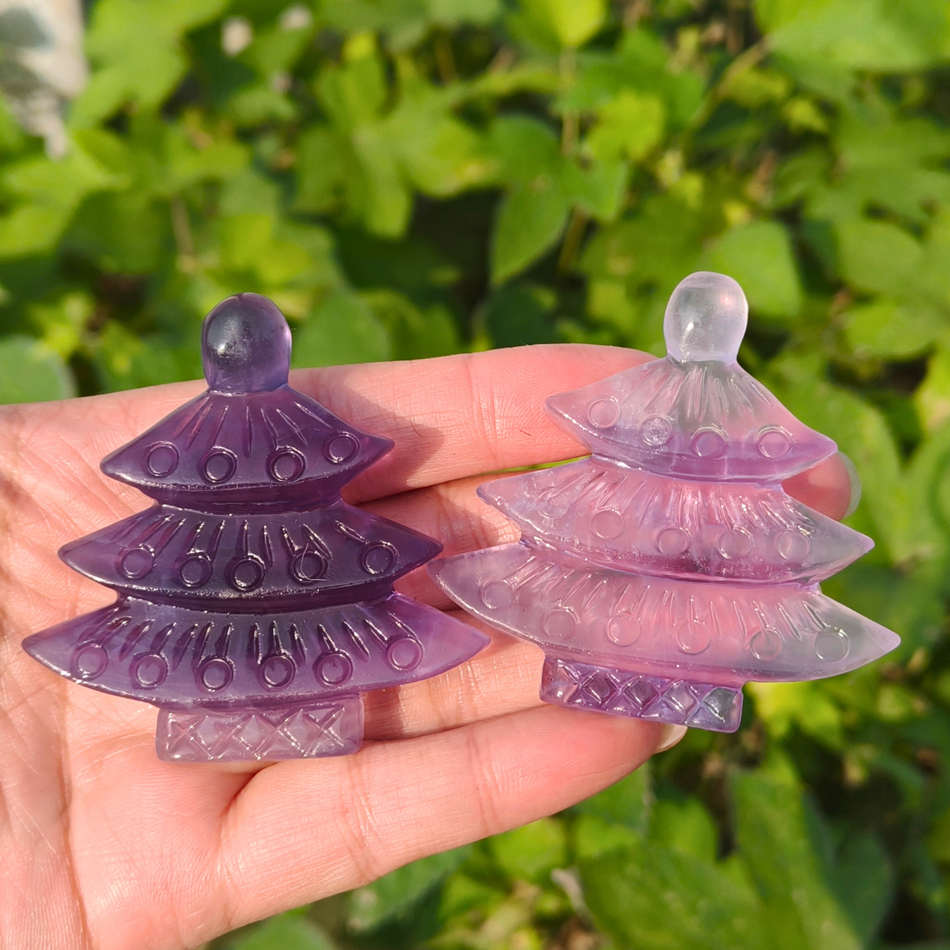 🌟Features: This Fluorite Christmas Tree features a cute three-layered design 🎄, with a deep purple hue and delicate carvings (circles and lines) that make each piece a festive and unique decor. It’s  smooth shine, perfect for adding a touch of charm to your space.