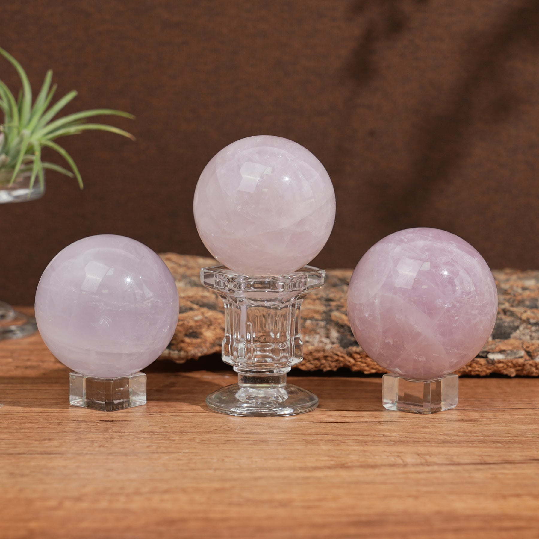 🌟Features: Crafted from a rare variant of rose quartz, the Lavender Rose Quartz Sphere is distinguished by its soft lavender hue. Its unique coloration originates from trace amounts of titanium and manganese within the crystal structure, resulting in its captivating and gentle appearance.