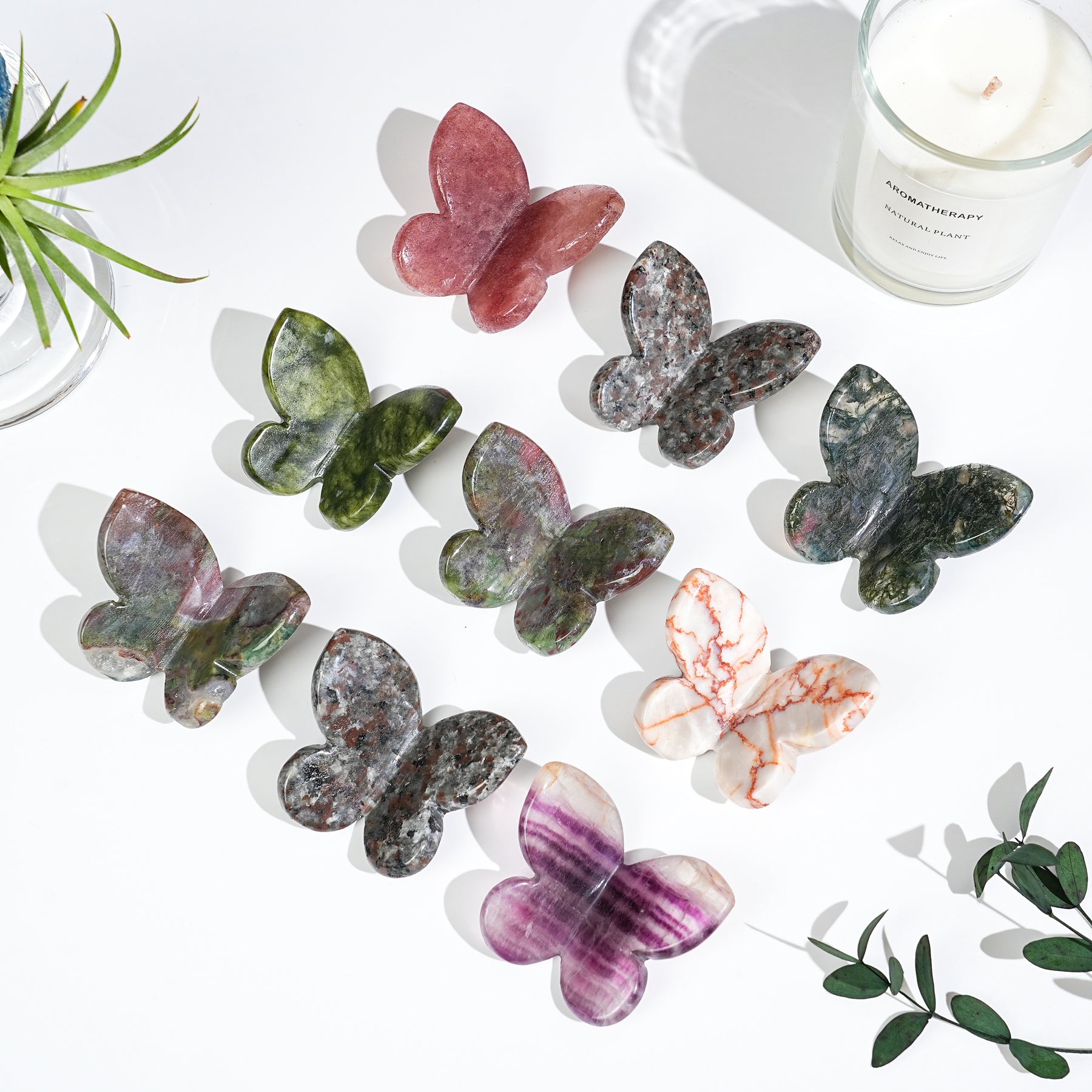 🌟Features: These butterflies are carved from various natural crystals, each with a unique color and pattern—like rainbow magic fluttering into your space 🦋. Each butterfly is a unique work of art, with a smooth surface that highlights the natural beauty of the crystal.