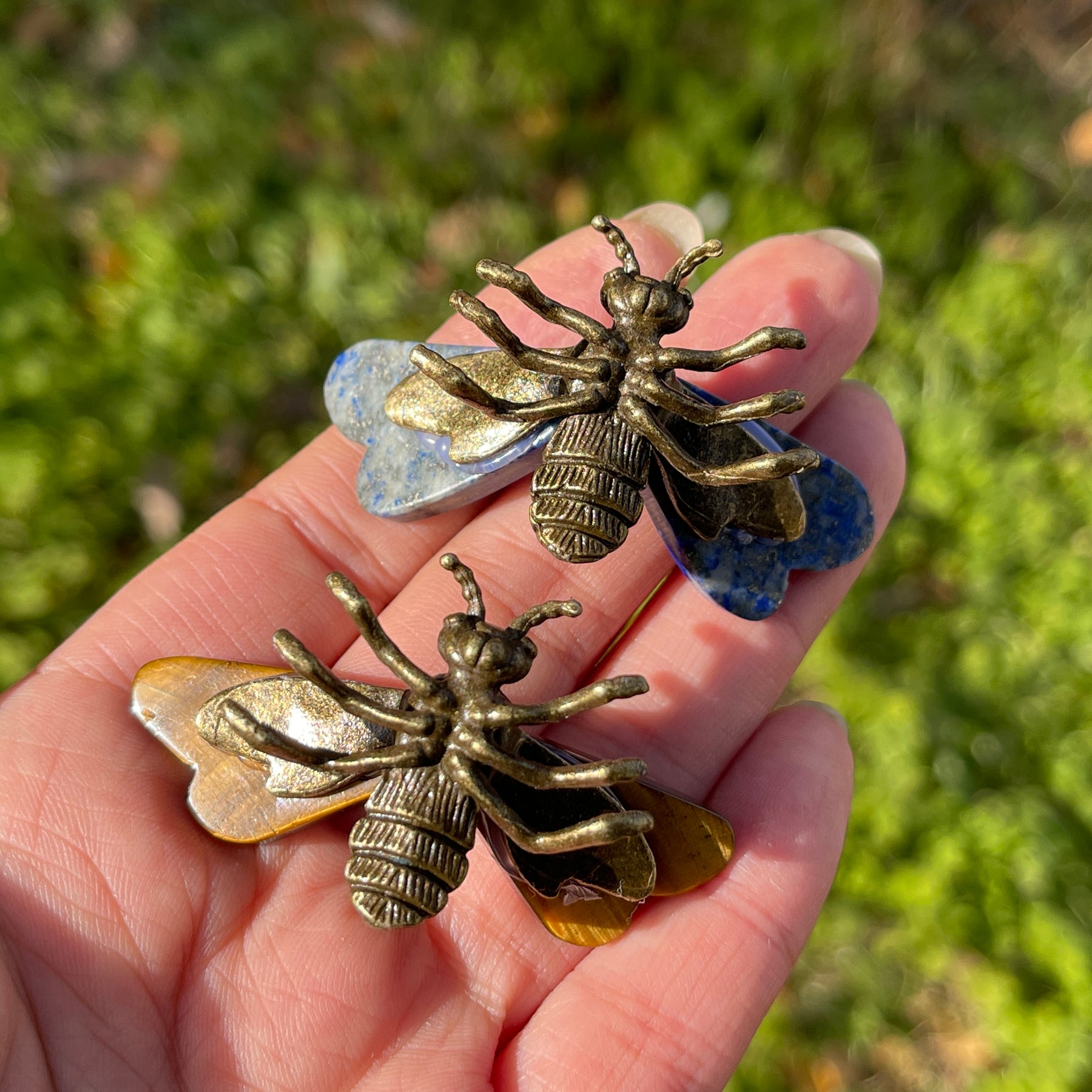 🌟Features:These charming pieces are crafted from natural crystal, with delicate, polished crystal wings paired with a detailed metal bee body. The wings come in vibrant hues—deep royal blue and warm golden amber—creating tiny, lifelike bees that fit perfectly in the palm or can be worn as an accent.Inspired by the bee’s symbolism of community, diligence, and abundance, this design celebrates the beauty of collaboration and steady effort: the bee’s busy form evokes the energy of purposeful action, while the crystal wings add a touch of luminous grace. No two pieces are identical (each has unique color patterns and wing textures), making your bee a one-of-a-kind accent for bags, jackets, or display.