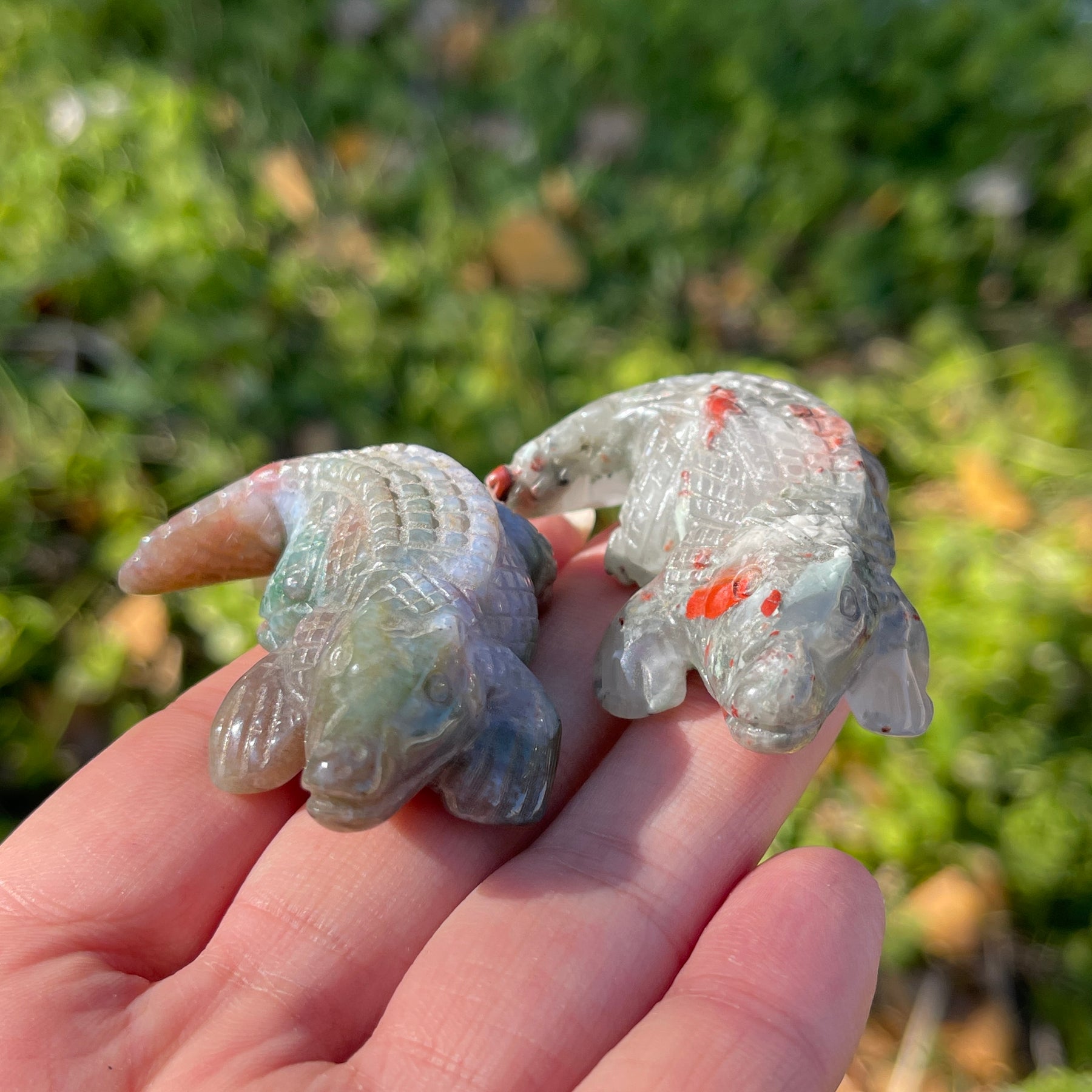 🌟Features:These crafted from natural crystal, shaped into detailed, compact crocodiles with textured, scale-patterned bodies and poised, low-slung postures that fit perfectly in the palm 🪨. Each crocodile showcases the stone’s unique natural hues and patterns—from earthy green and speckled black-white to soft lavender and gray—creating a collection of tiny, resilient reptilian companions.Inspired by the crocodile’s symbolism of resilience, protection, and primal strength, this design leans into the beauty of steady, unyielding courage: the crocodile’s textured scales evoke the armor to protect what matters, while its varied natural hues mirror the richness of embracing both your grounded and bold sides.