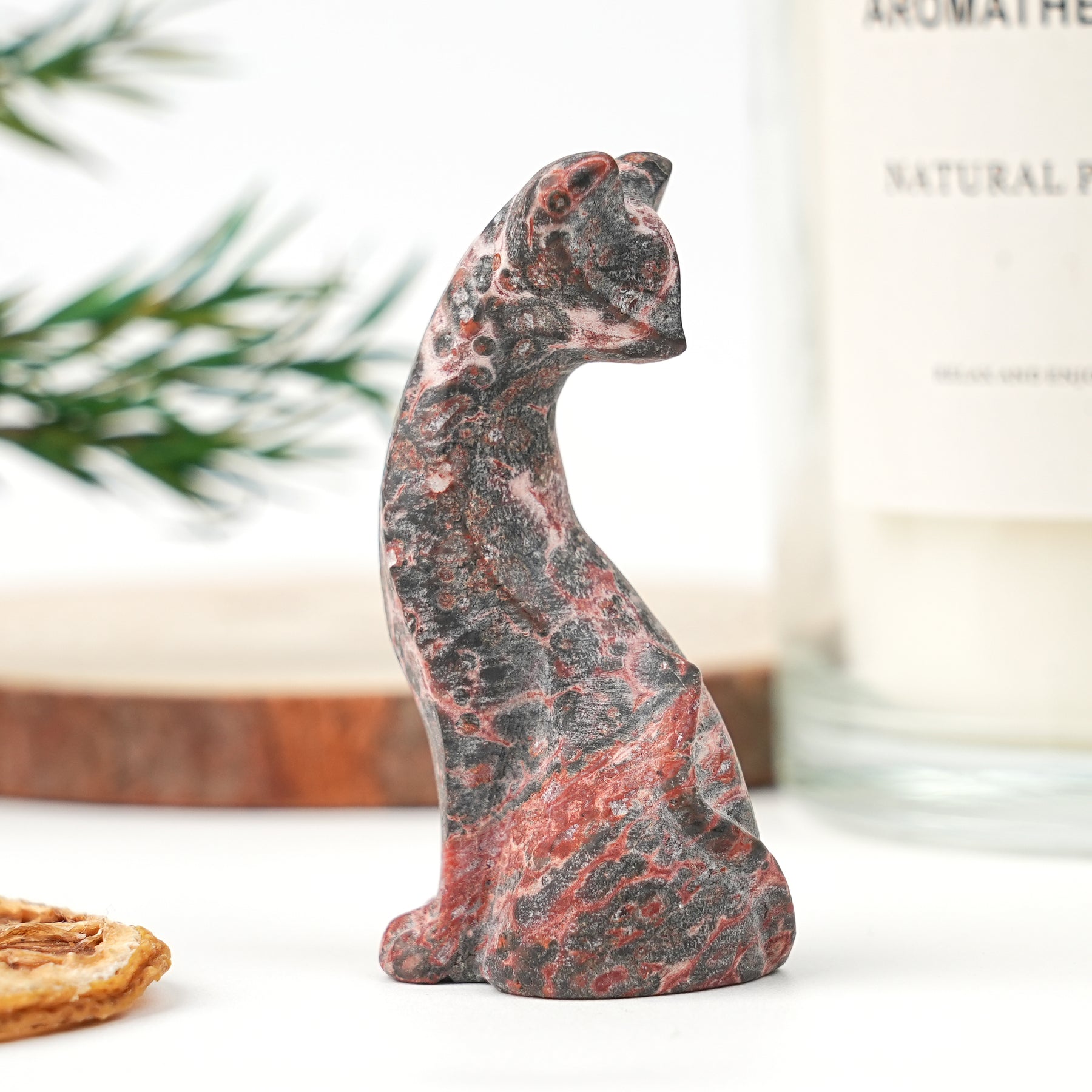 🌟Features:This "Looking Back" cat  vividly captures the feline grace—with perky ears, a curved body, and the iconic "looking back" posture that feels lively and affectionate.Each piece bears one-of-a-kind veining, subtle color variations, or gentle translucency, telling the earth’s natural story