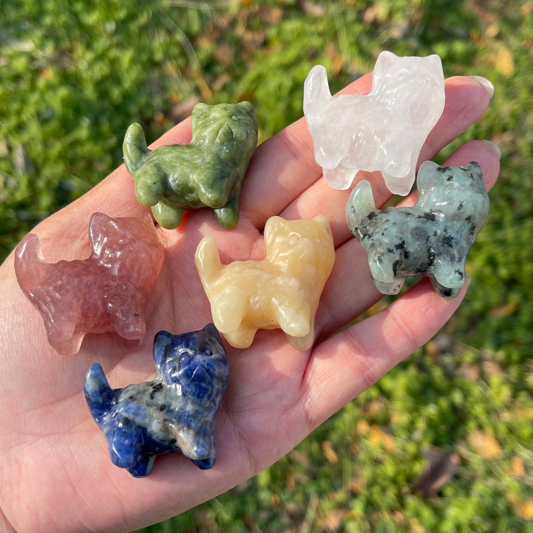 🌟Features:These adorable pieces are crafted from natural crystal, shaped into compact, playful mini cats with rounded bodies, perked ears, and tiny tails that fit perfectly in the palm.Each cat showcases the stone’s unique natural hues and patterns—from soft pink and sunny yellow to earthy green and deep blue—creating a collection of tiny, vibrant feline companions.Inspired by the cat’s symbolism of independence, intuition, and gentle warmth, this design leans into the beauty of quiet confidence: the cat’s curious posture evokes the clarity of trusting your instincts, while its varied natural hues mirror the richness of embracing both your playful and grounded sides. No two carvings are identical (each has unique color patterns and texture details), making your piece a one-of-a-kind accent for desks, shelves, or any nook that needs a dose of gentle, joyful energy.
