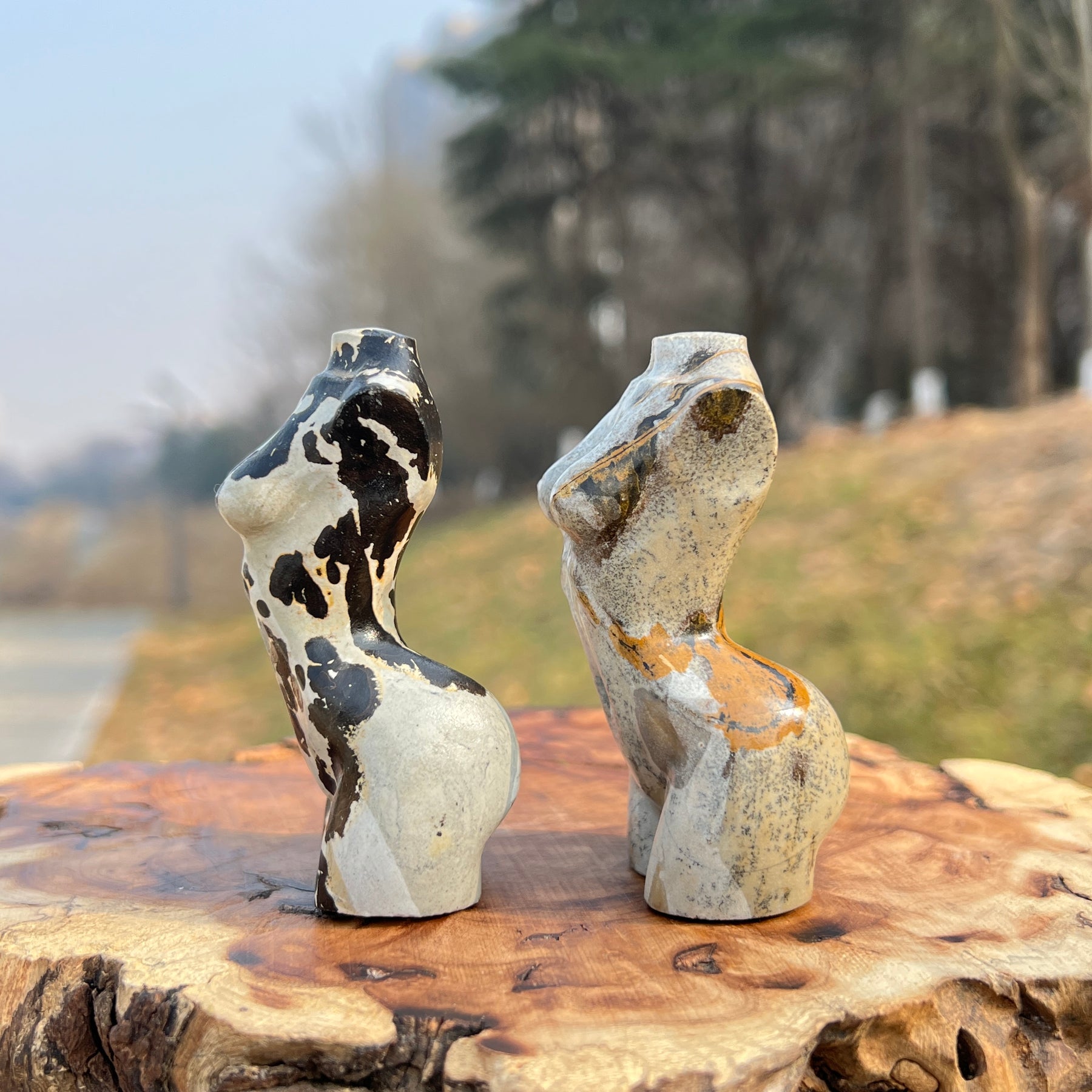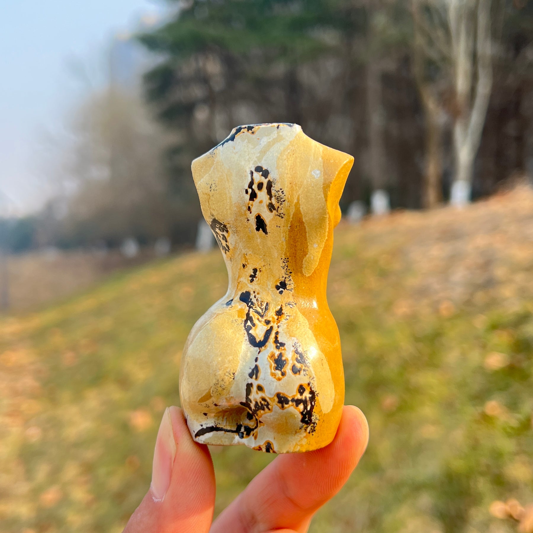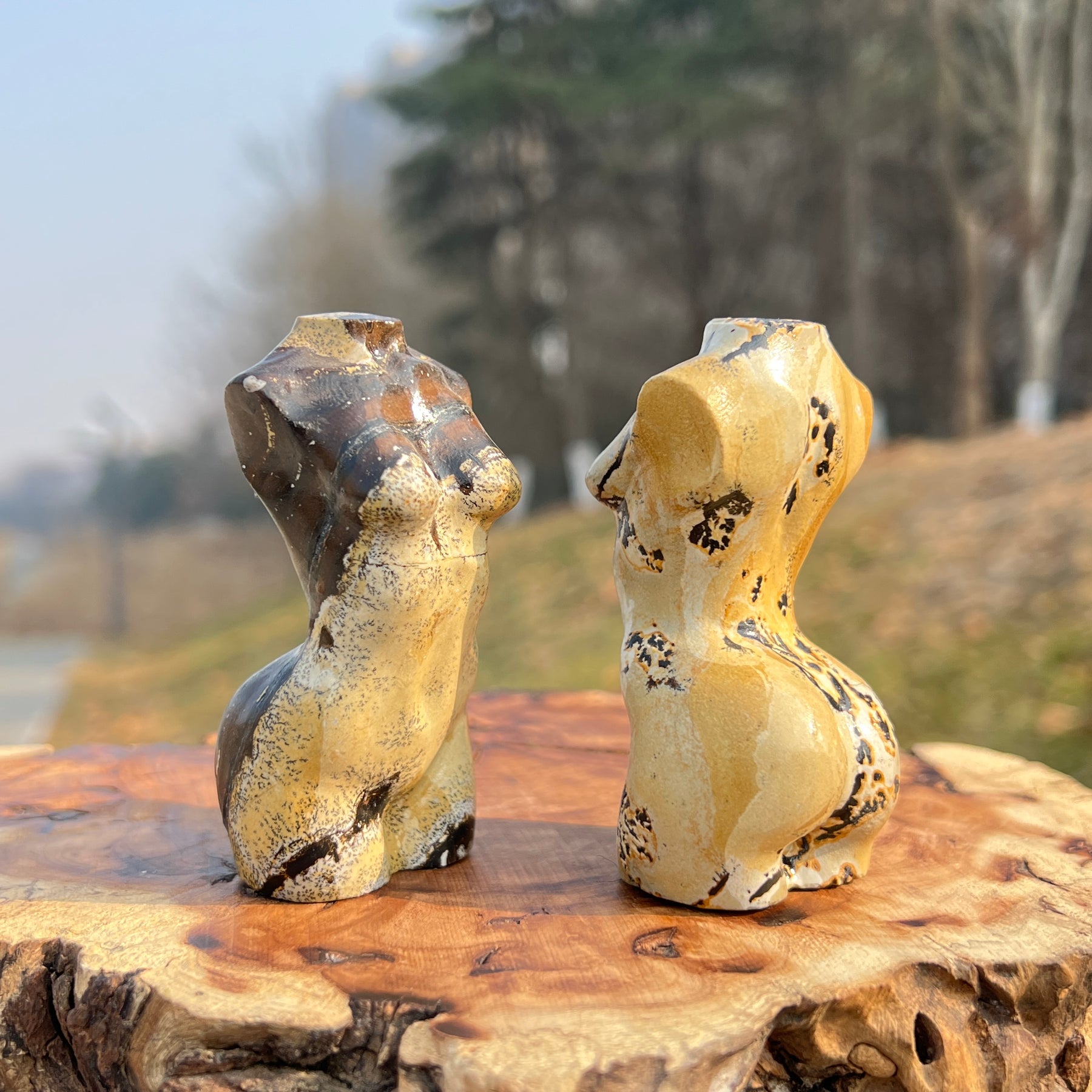 🌟Features:These elegant pieces are crafted from natural Picture Jasper—a mineral with a warm, earthy base of cream, gold, and deep charcoal, marked by unique, landscape-like patterns that resemble desert vistas and stone formations 🌄. They are shaped into stylized goddess torsos with soft, curved lines and a compact, balanced form that fits comfortably in the palm.Inspired by the goddess’s symbolism of feminine power, nurturing, and connection to the earth (paired with Picture Jasper’s reputation as a "stone of grounding and wholeness"), this design blends earthy warmth with intentional energy: the torso’s curved form evokes the strength of self-love and nurturing, while the jasper’s landscape patterns mirror the harmony of embracing your connection to nature.