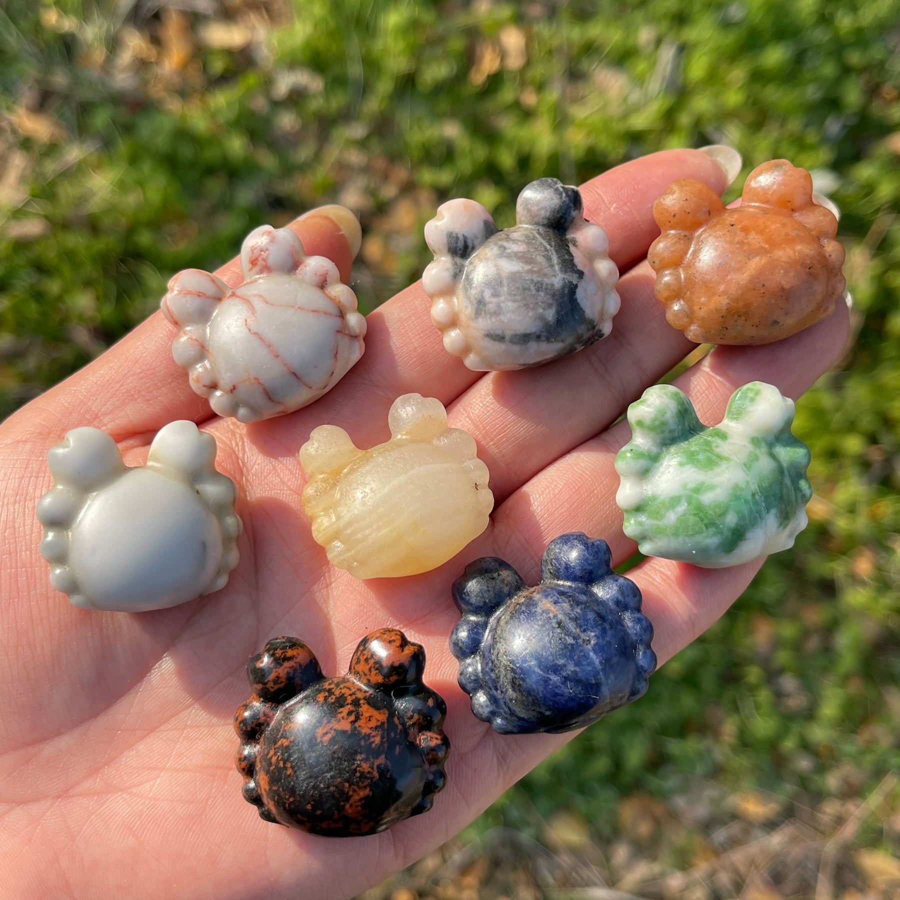 🌟Features:These charming pieces are crafted from natural crystal, shaped into compact, playful mini crabs with rounded bodies, pincers, and tiny legs that fit perfectly in the palm. Each crab showcases the stone’s unique natural hues and patterns—from deep blue and earthy green to sunny orange and crisp white—creating a collection of tiny, vibrant crustacean companions.Inspired by the crab’s symbolism of protection, adaptability, and resourcefulness, this design leans into the beauty of navigating life with both strength and flexibility: the crab’s pincers evoke the courage to protect what matters, while its varied natural hues mirror the richness of embracing both your grounded and adaptable sides.