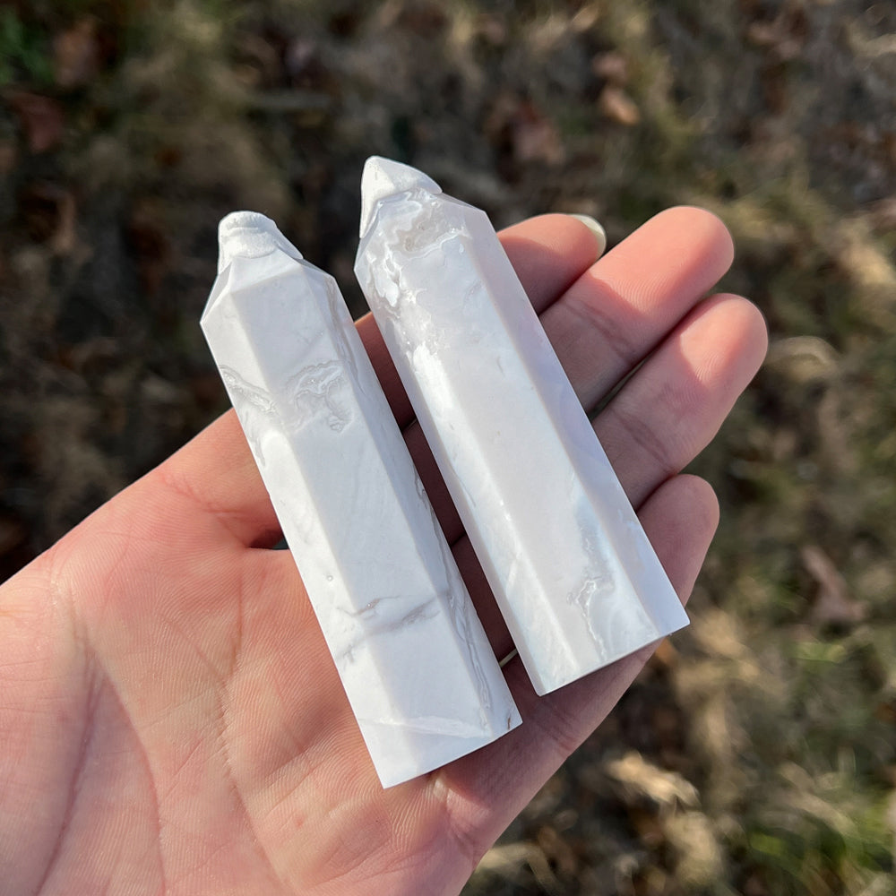 🌟Features:This crafted from natural White Agate—a soft, milky-white mineral swirled with delicate gray veins like a wispy cloud caught in smooth stone ☁️!Shaped into a sleek point with a tapered, pointed tip and a structured, multi-faceted body that fits comfortably in the palm,each one carries the stone’s signature "calm glow" charm: light catches its translucent layers to create a gentle, diffused shimmer, as if holding a tiny fragment of quiet, luminous sky.Inspired by the point’s symbolism of "focused clarity"paired with White Agate’s reputation as a "stone of peace", this design blends serene beauty with intentional purpose: the pointed tip evokes the clarity of channeling calm energy, while the white agate’s soft, veined pattern mirrors the gentle flow of quiet reflection. No two points are identical each has unique vein patterns and subtle color depth,making your piece a one-of-a-kind accent for crystal grids, meditation spaces, or any nook that needs a dose of centered, luminous calm.