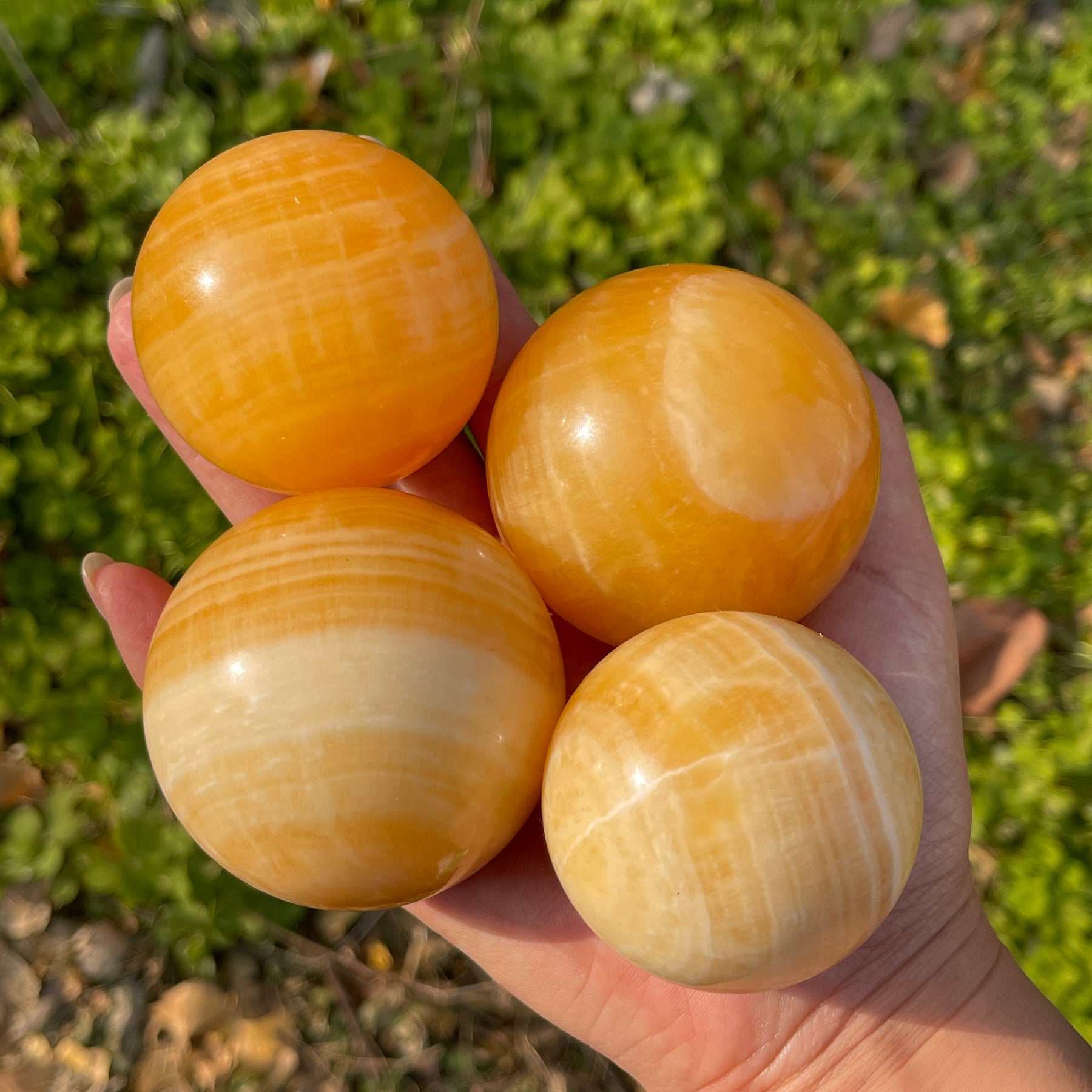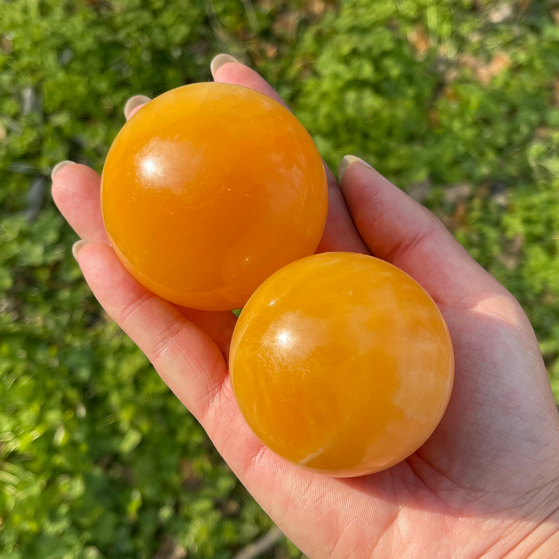🌟Features:These spheres are crafted from natural Yellow Calcite—a mineral with a warm, sunny golden hue and soft, wavy white banding, like a sun-dappled desert dune captured in stone 🌞. Each sphere features a perfectly smooth, polished surface that fits comfortably in the palm, with subtle, natural banding patterns that make every piece unique.This design blends earthy warmth with intentional energy: the sphere’s rounded form evokes the completeness of being grounded in your power, while the calcite’s golden hue mirrors the energy of nurturing joy and resilience.