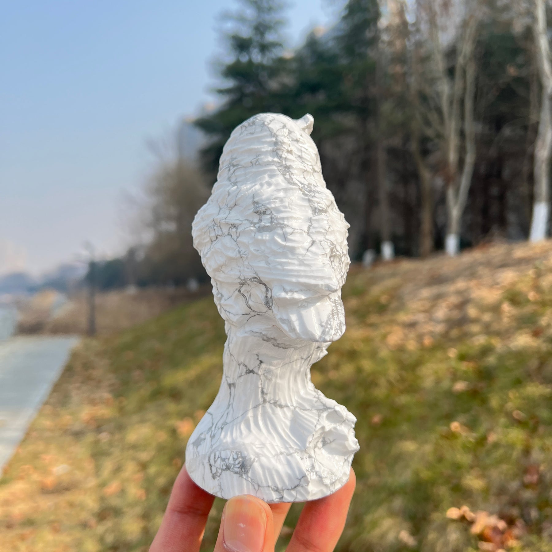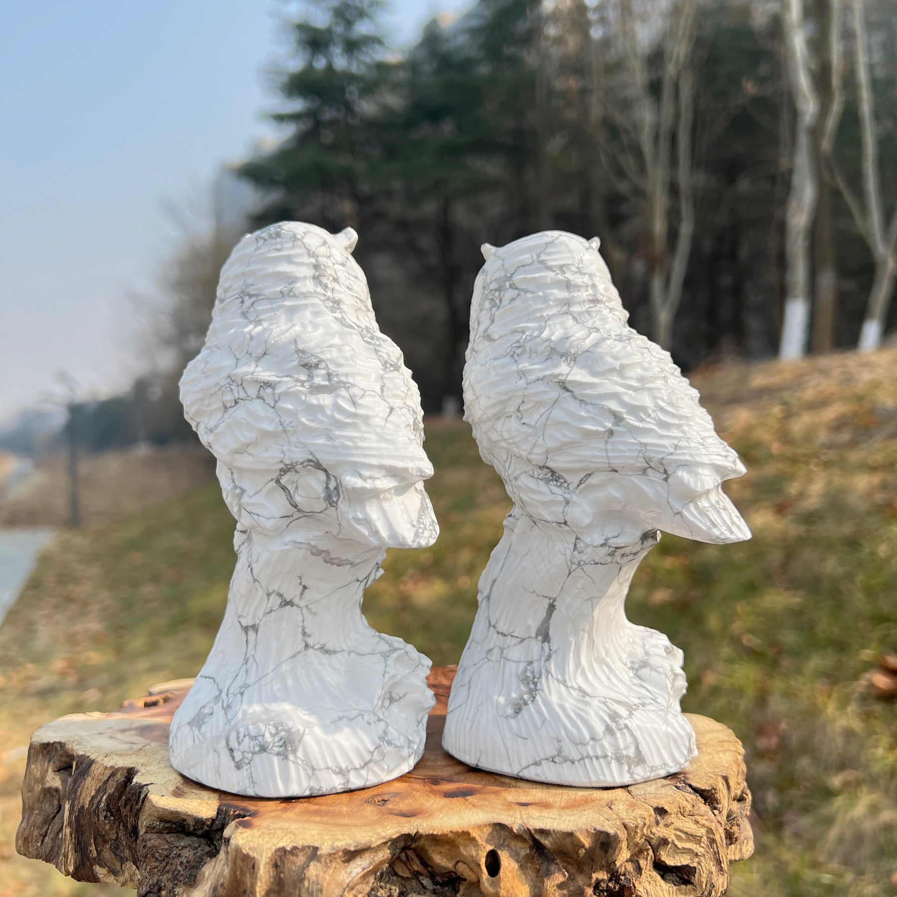 🌟Features:These crafted from natural Howlite—a mineral with a soft, creamy white base and dramatic gray web-like inclusions, like a fragment of a moonlit stone captured in nature 🌙. They are shaped into stylized owls with textured, feather-like surfaces and alert, perked ears, creating a tactile, mystical companion that fits comfortably in the palm.This design blends ethereal calm with intentional energy: the owl’s textured form evokes the depth of inner wisdom, while the howlite’s contrasting hues mirror the harmony of stillness and insight.