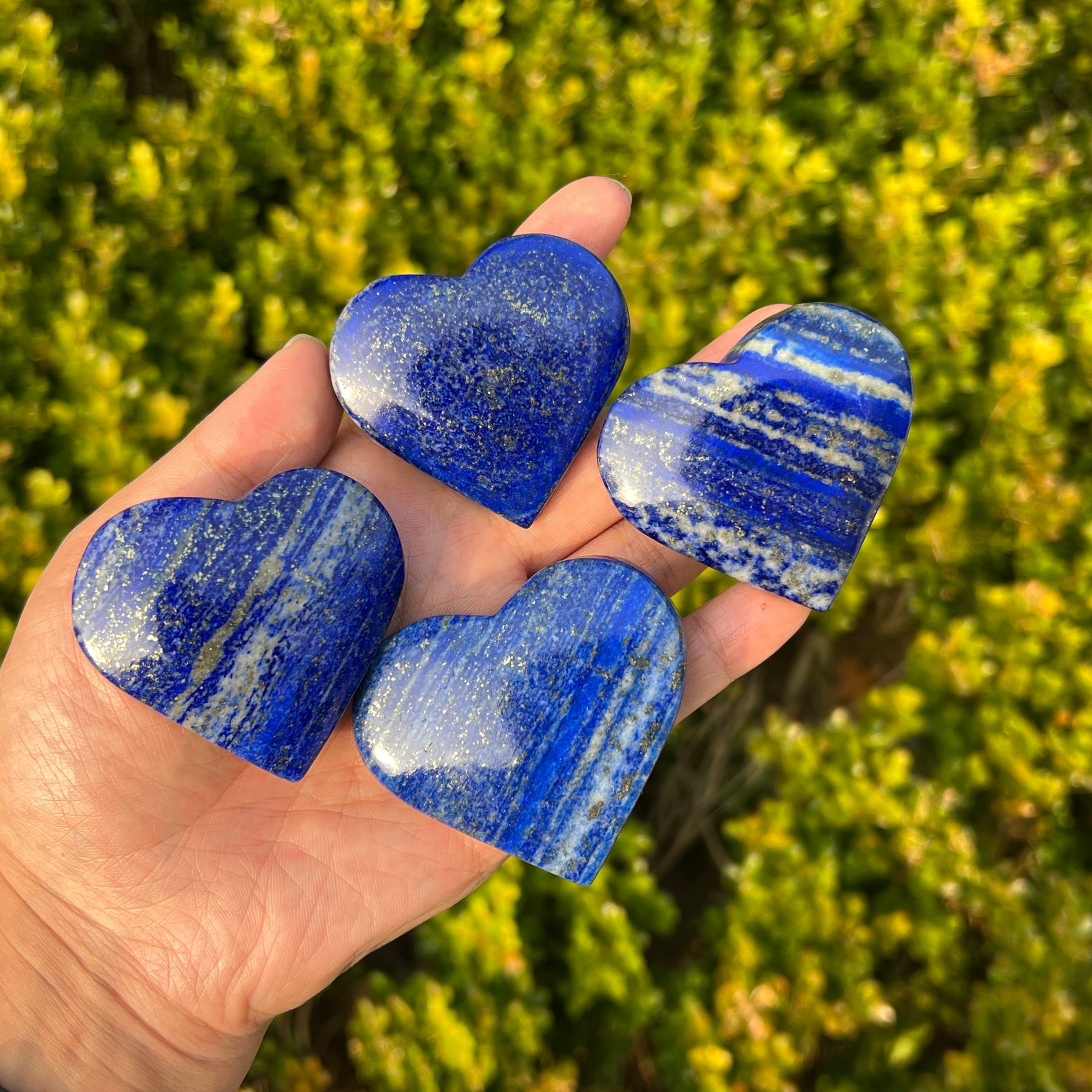Crafted from natural lapis lazuli, these hearts feature deep blue hues with golden flecks and unique banding—each piece is one-of-a-kind, exuding regal, heartfelt charm 💙💎✨.