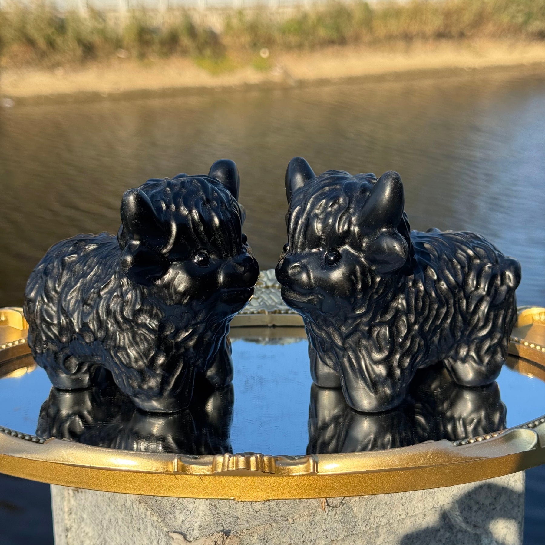 🌟Features:Crafted from genuine natural obsidian crystal, this adorable Highland cow figurine boasts a sleek black luster and intricate detailing—from its fluffy-textured “fur” to its cute facial expression. The obsidian material ensures a smooth, cool touch and unique natural charm, making each piece one-of-a-kind!