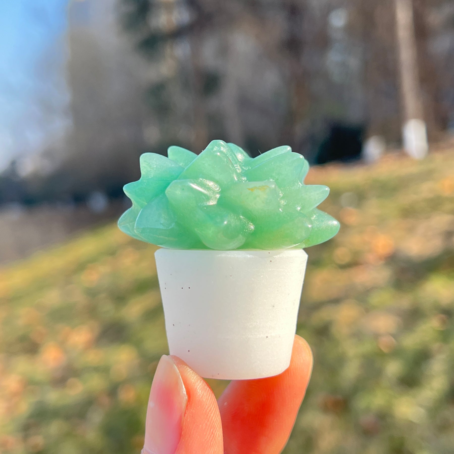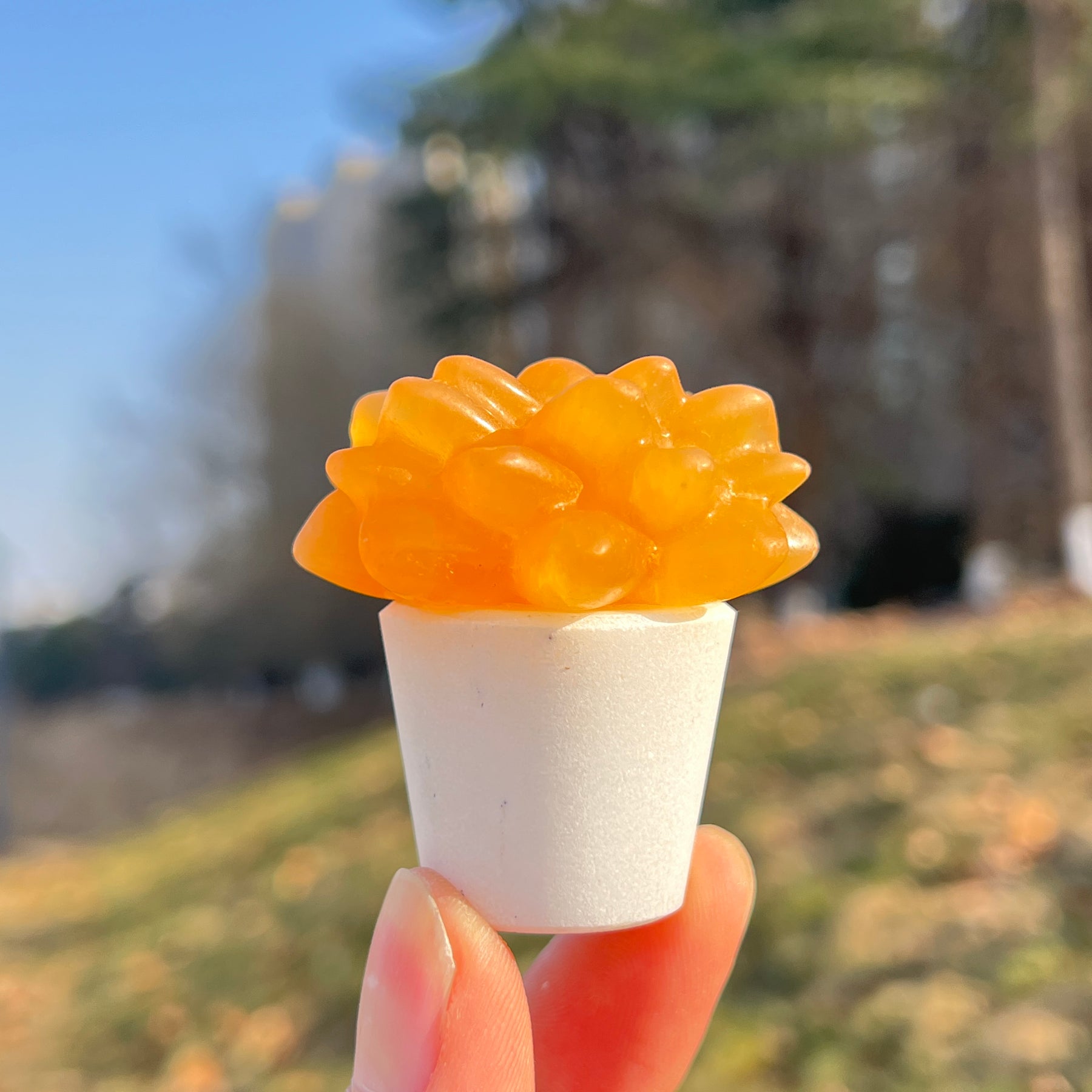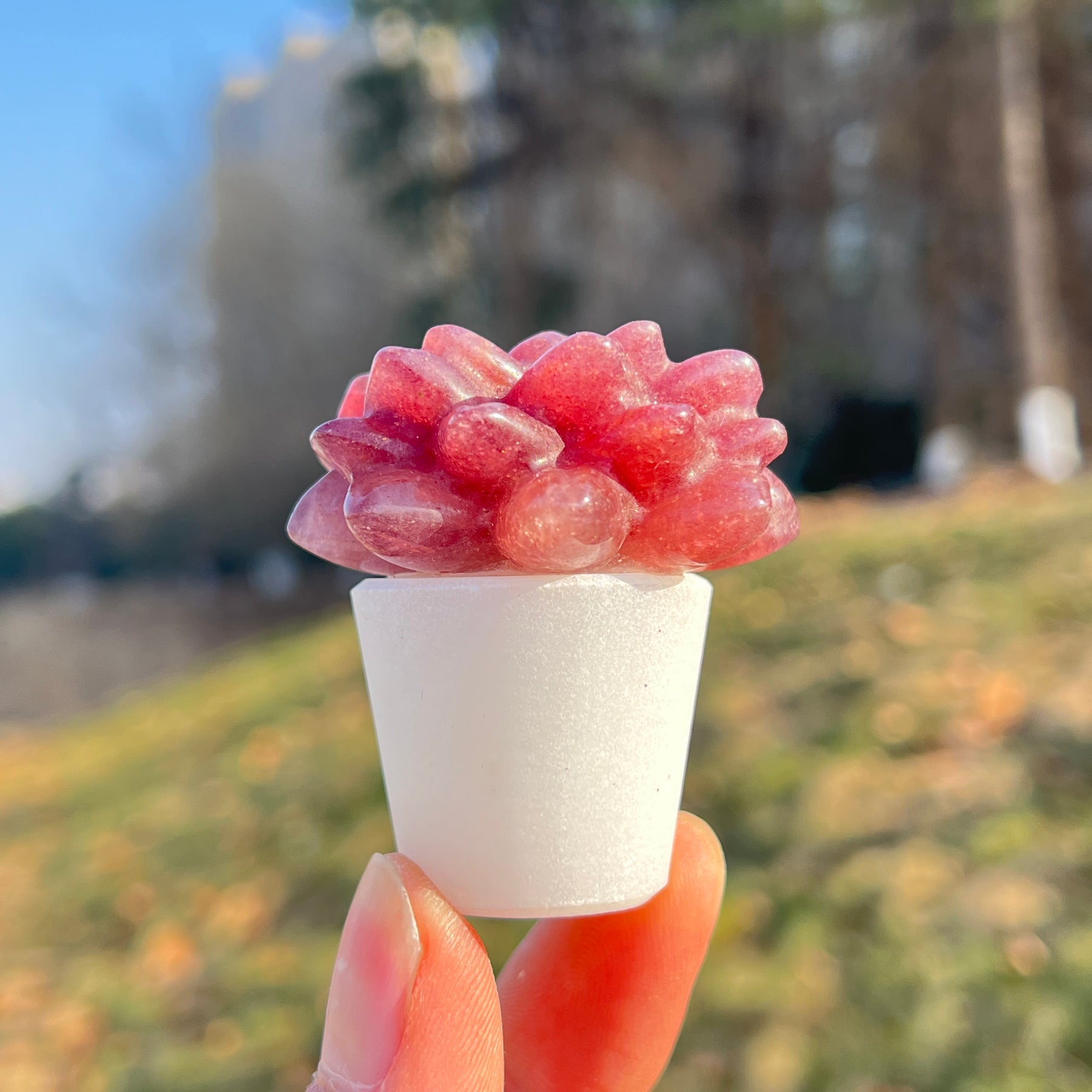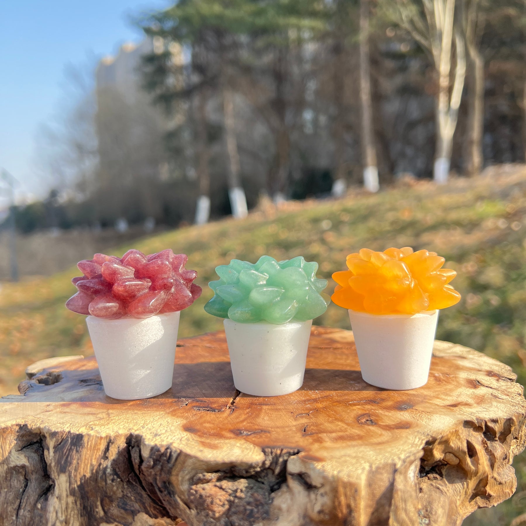 🌟Features:These crafted from natural crystal, shaped into lifelike succulent rosettes and nestled in smooth, white stone pots. Each succulent features unique natural hues—from soft pink and sunny orange to gentle green and translucent white—creating a collection of tiny, vibrant potted plants that fit perfectly in the palm of your hand.Inspired by the succulent’s symbolism of resilience, growth, and gentle nourishment, this design celebrates the beauty of thriving in small, steady ways. The layered, fleshy leaves evoke the strength to endure and grow, while the varied natural hues mirror the richness of embracing life’s quiet, consistent moments. No two carvings are identical, making your piece a one-of-a-kind accent for desks, windowsills, or any nook that needs a dose of cheerful, grounded energy.