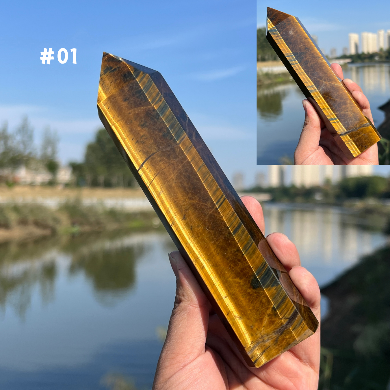 🌟Features: Crafted from natural tiger eye, these towers have striking golden-brown bands and a glossy finish. Their pointed design makes them bold crystal pieces 🔮, each unique.