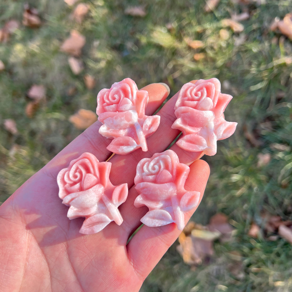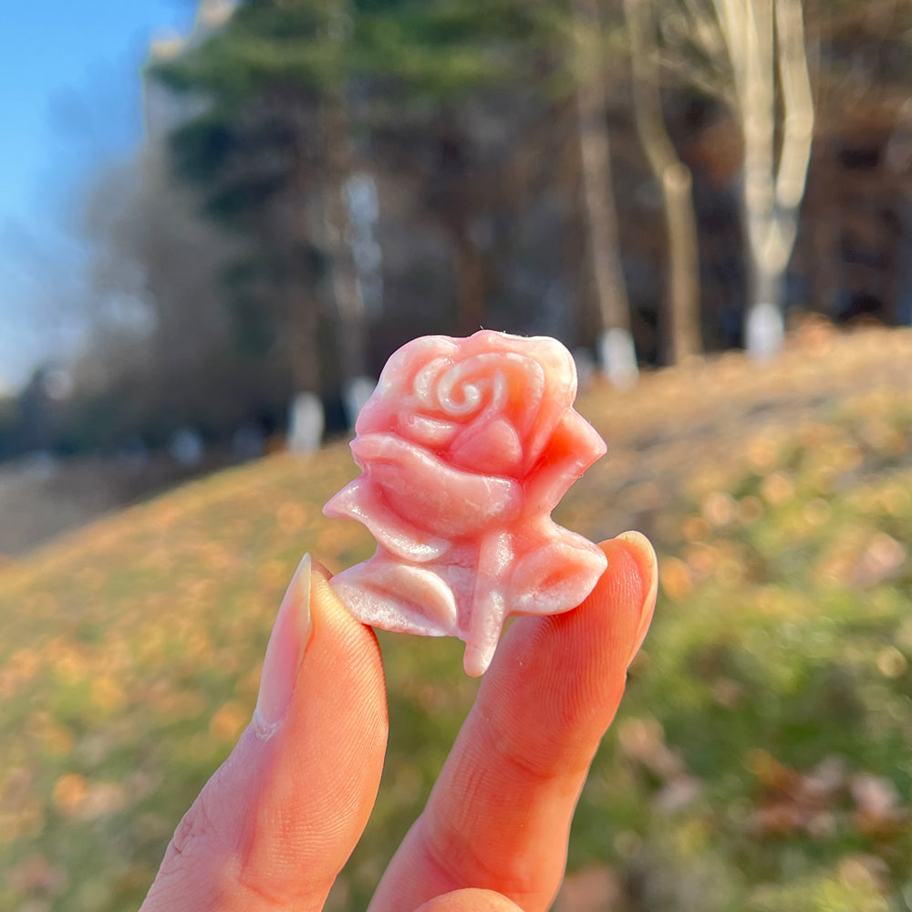 Pink Opal Rose Flower Carving