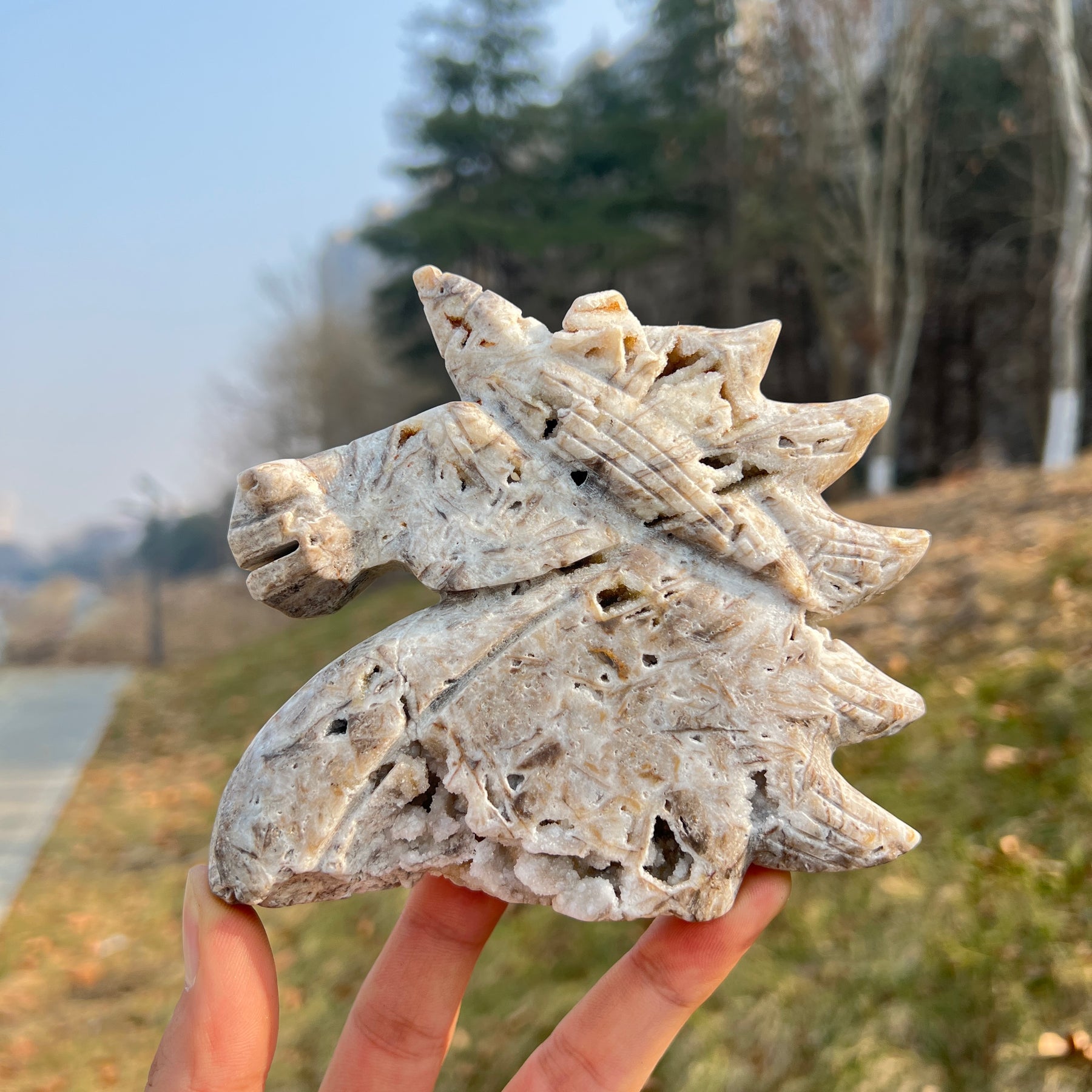 🌟Features:These crafted from natural Agate Geode—a mineral with a porous, creamy white base, accented with earthy brown and gray inclusions, and dotted with tiny crystal-filled cavities that resemble a hidden treasure trove 🔮. They are shaped into stylized unicorn heads with spiky, sunburst manes and a single, pointed horn, creating a tactile, mystical companion that fits comfortably in the palm.This design blends earthy warmth with intentional energy: the unicorn’s spiky mane evokes the magic of embracing your uniqueness, while the geode’s porous texture mirrors the beauty of revealing your inner light.