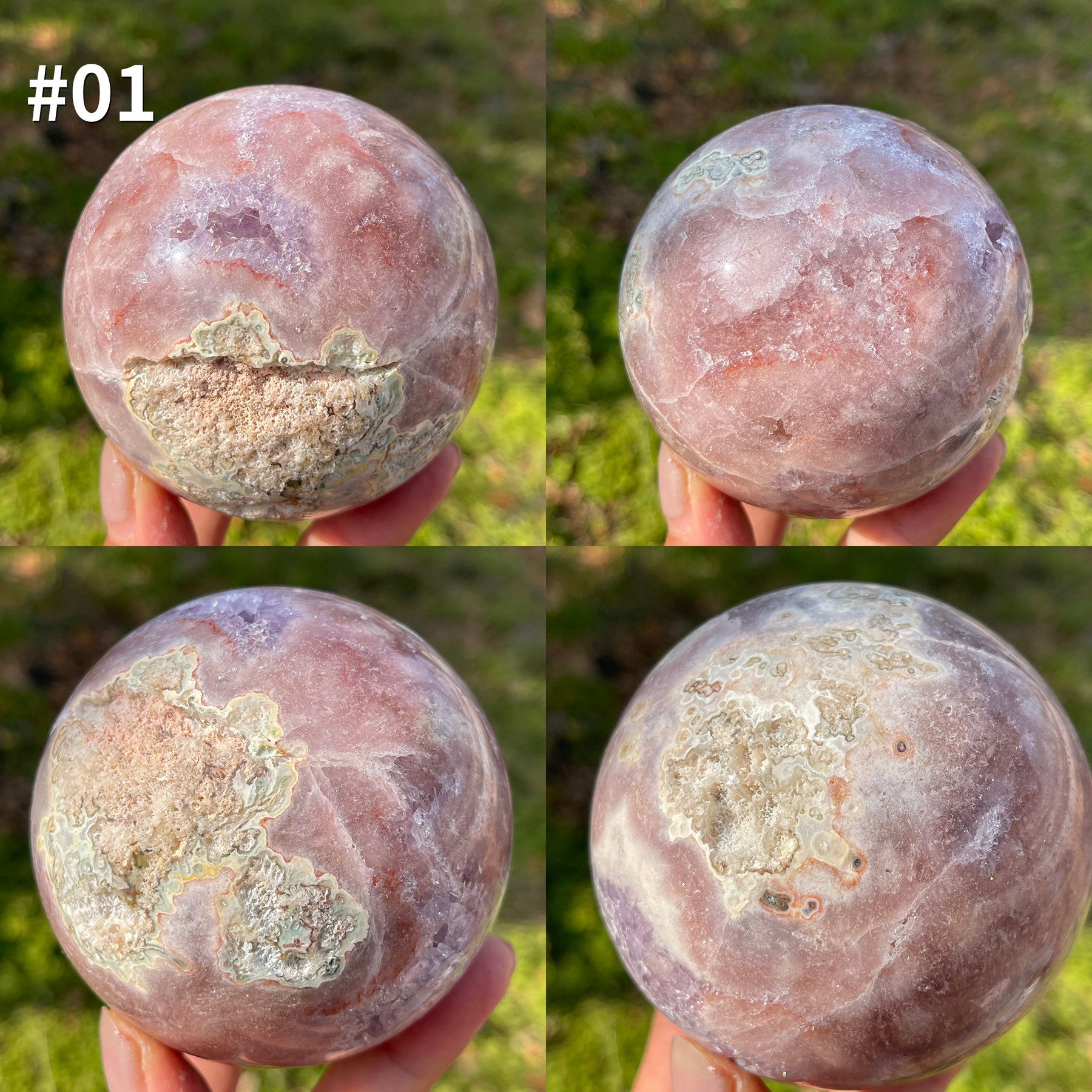 🌟Features:This sphere is formed from natural pink amethyst, a soft, dreamy variant of amethyst with delicate blush-pink and lavender tones. Each sphere features a unique internal geode cavity, where tiny, sparkling crystals cluster together like a hidden treasure trove. The outer matrix blends warm rose-pink, creamy white, and subtle earthy hues, creating a gentle, ethereal appearance that feels like a piece of a pastel sky captured in stone.The geode opening on each sphere reveals a world of tiny, glistening crystals, as if the earth itself has opened to share its inner beauty. When light catches the surface, the pink amethyst shimmers with a soft, otherworldly luster, adding depth and mystery to its presence.
