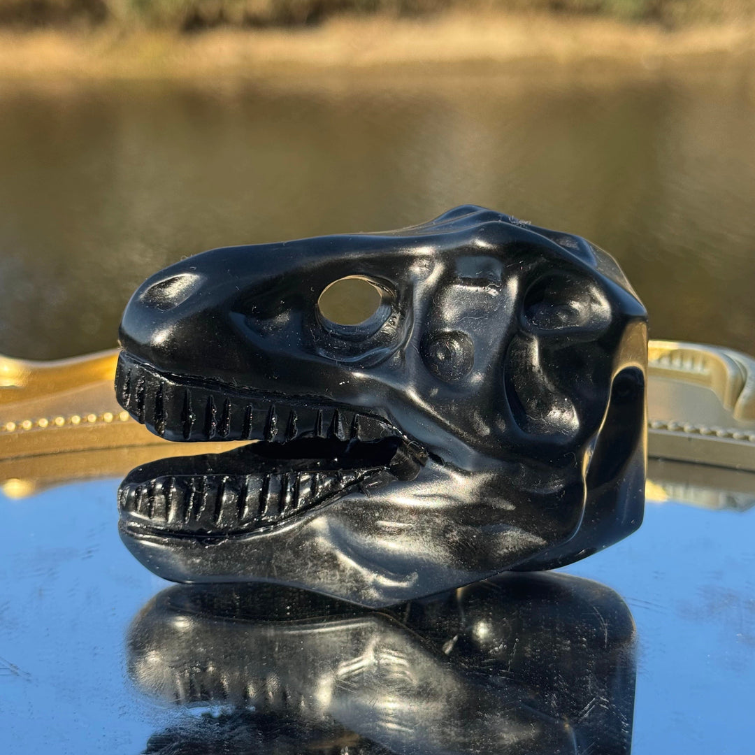 Natural Carved Obsidian Tyrannosaurus Rex Skull