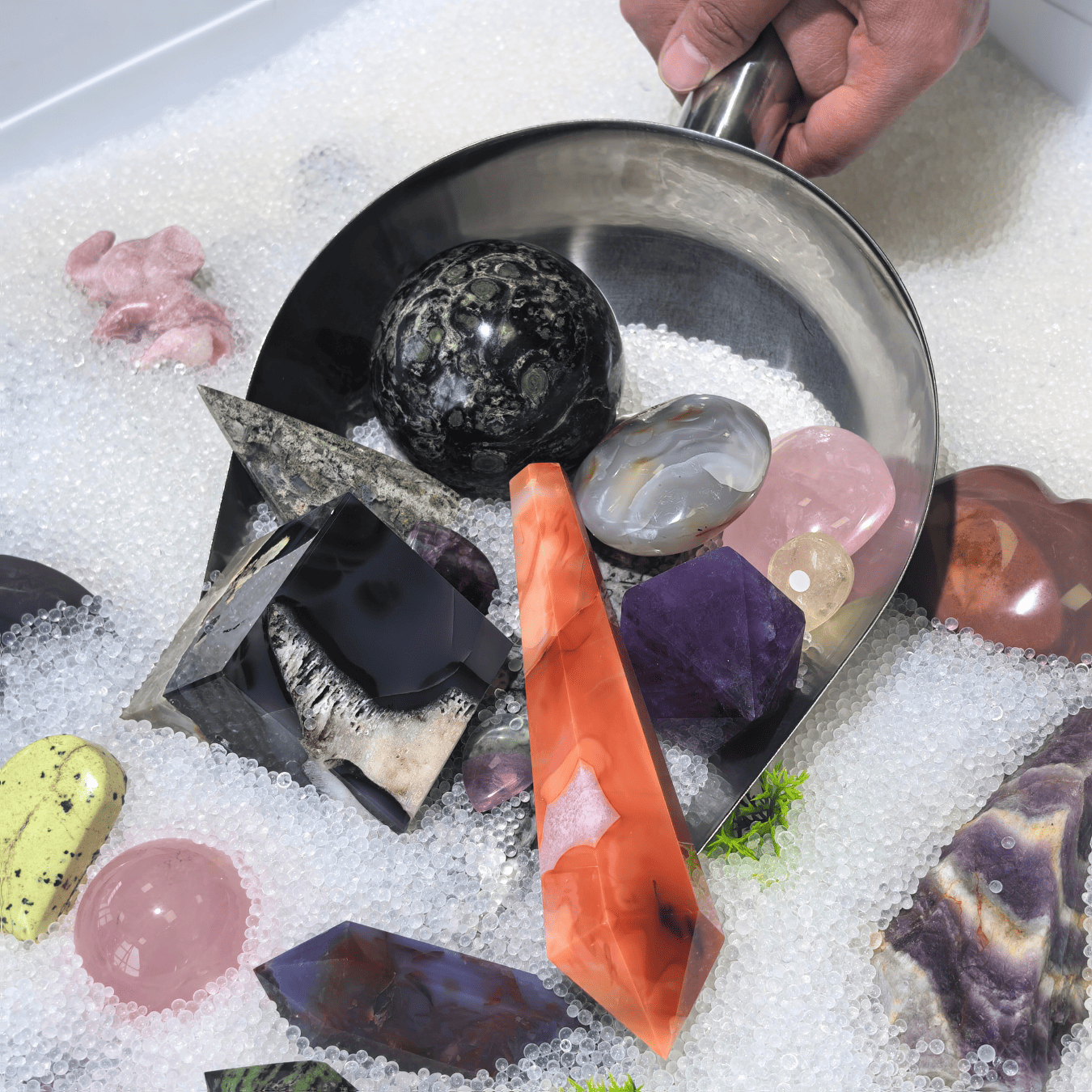Notre marque vise à résoudre les problèmes du marché du cristal avec les contrefaçons et les produits de qualité inférieure. Nous nous engageons à être un exemple positif en proposant des cristaux véritables et purs. Nous choisissons soigneusement nos partenaires pour garantir que chaque cristal est authentique et naturel. Nous évitons les déchets de cristaux synthétiques et leur impact environnemental. Grâce à un contrôle qualité strict et à des opérations transparentes, nous nous efforçons d'éliminer tout risque de tromperie de la part des clients. Notre objectif va au-delà des transactions ; nous voulons que chaque échange de cristaux répande l'amour et le bonheur.