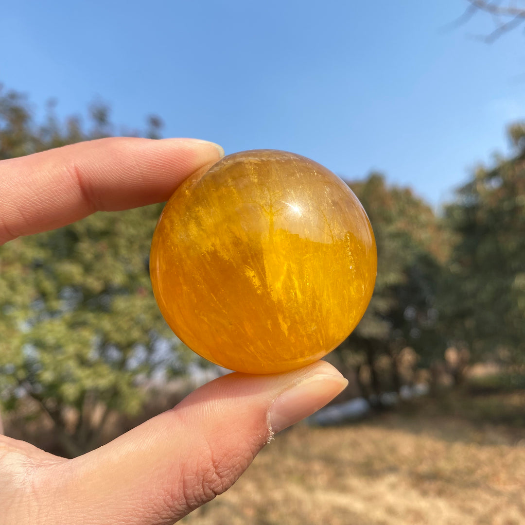 Natural Crystal Yellow Fluorite Sphere