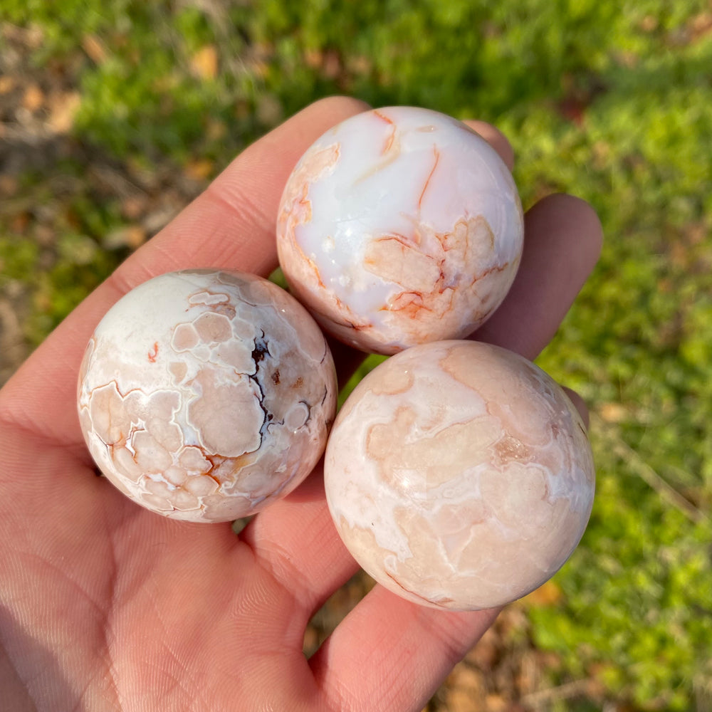 Natural Pink Flower Agate Sphere