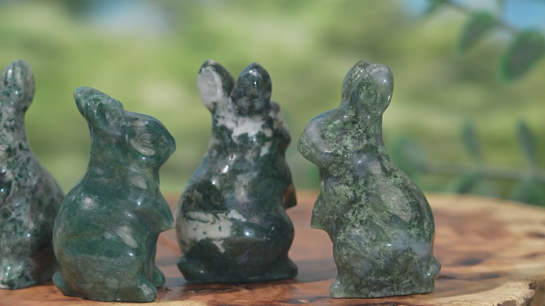Natural Carving Moss Agate Rabbit